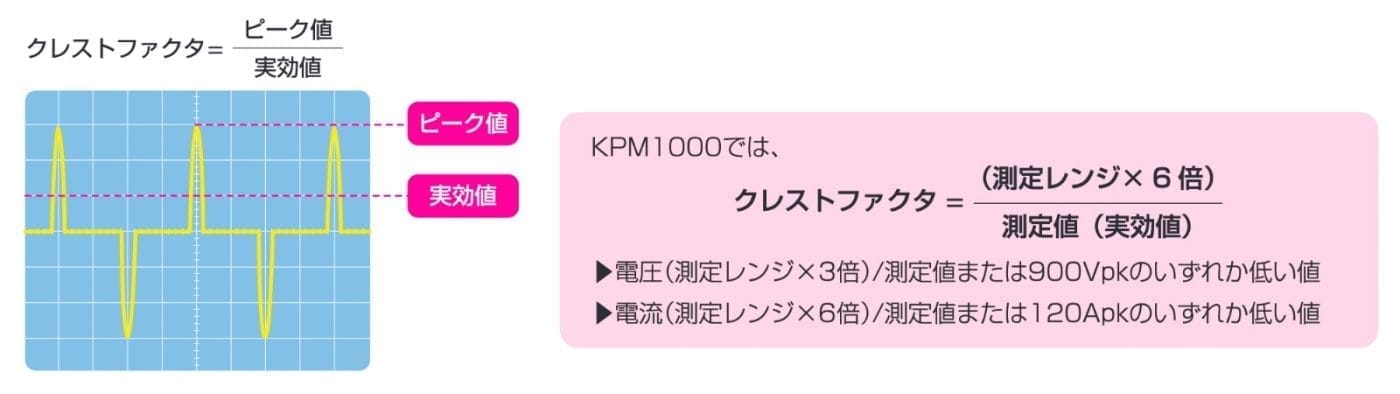Obtaining crest factor 6 realizes to perform highprecision measurements of waveforms having a small effective value but large peak value.*Allowable crestfactor of voltage mesurement is 3.